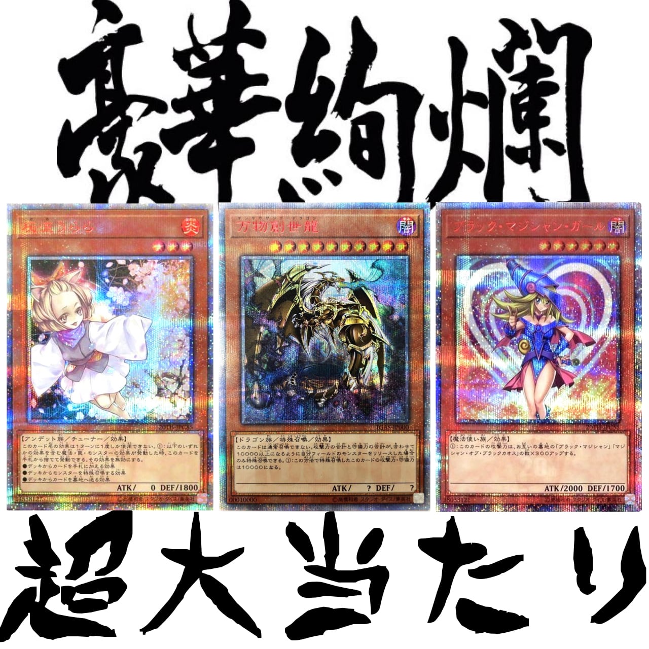 ※上記超大当たりは高額カードの為、引き換え券が封入されております。当選された方はメッセージより引き換え券に記入されているシリアルナンバーをお教え下さい。送料無料にて発送させていただきます。